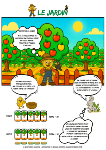 Un jeune jardinier invite les enfants Ă lâaider Ă compter les fruits de ses arbres⊠mais attention, rien nâest aussi simple quâil nây paraĂźt ! đđ